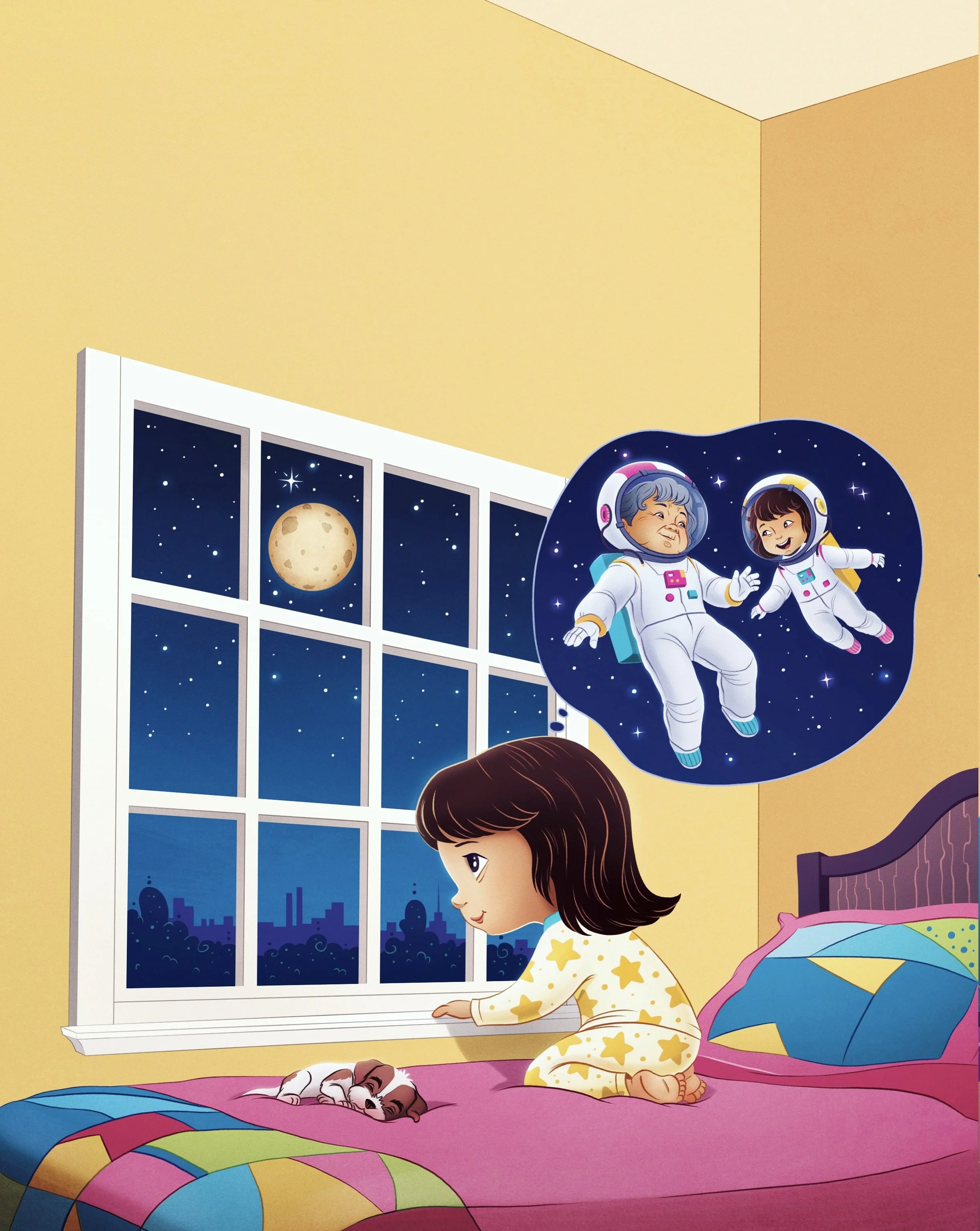 Inspired by the author's child's love for flight and space—and as a heartfelt tribute to the author’s late mother—this tale beautifully weaves together the magic of wonder, emotional exploration, and the joy of discovery. From soaring through starry skies to unraveling lunar mysteries, this illustrated adventure invites children of all ages to expand their horizons and explore the universe.